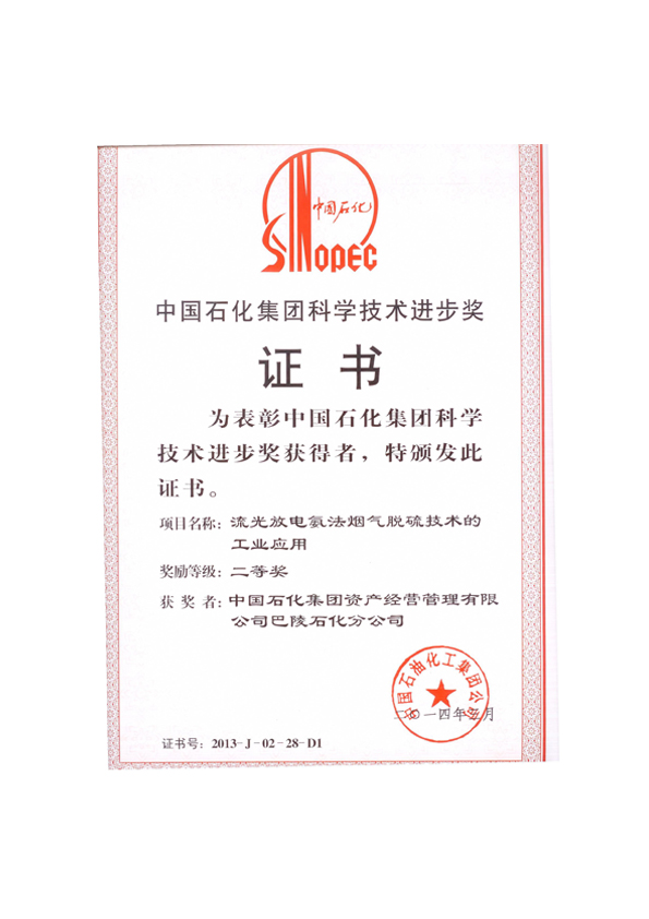 2014年度中國石化巴陵石化科技進(jìn)步二等獎(jiǎng)