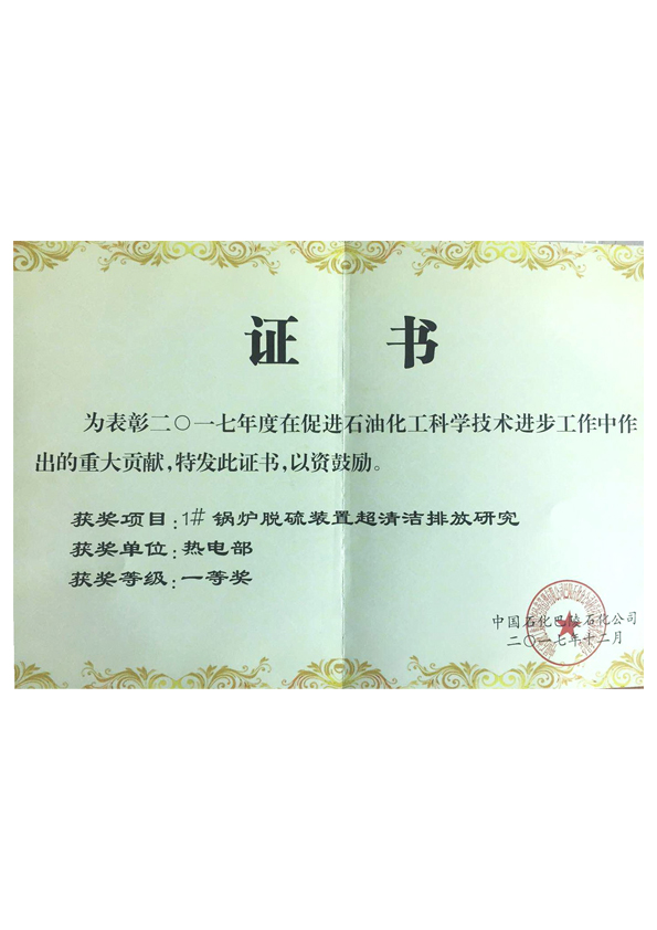 2017年度中國石化巴陵石化公司科技進(jìn)步一等獎(jiǎng)