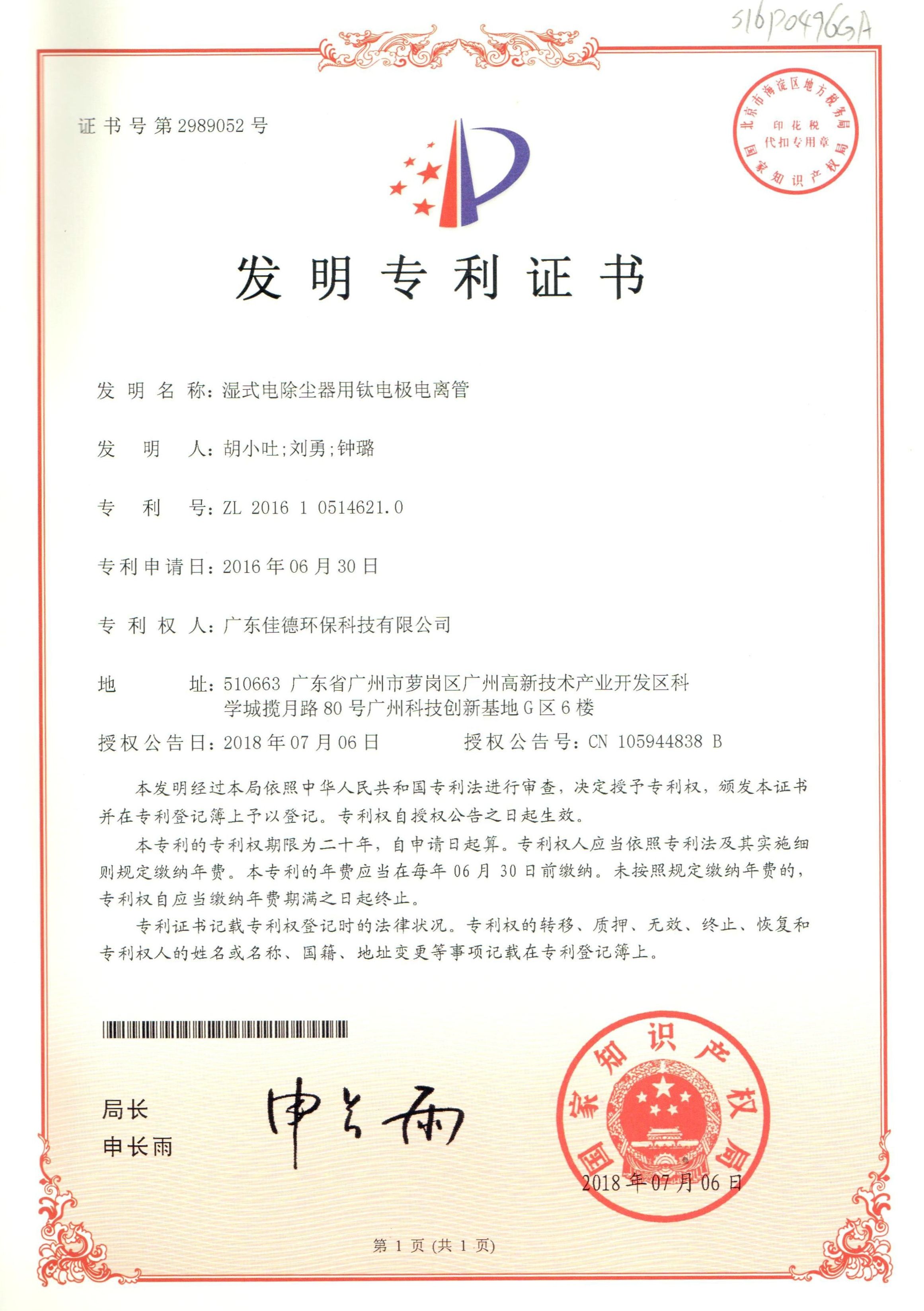 濕式電除塵器用鈦電極電離管(ZL201610514621.0)