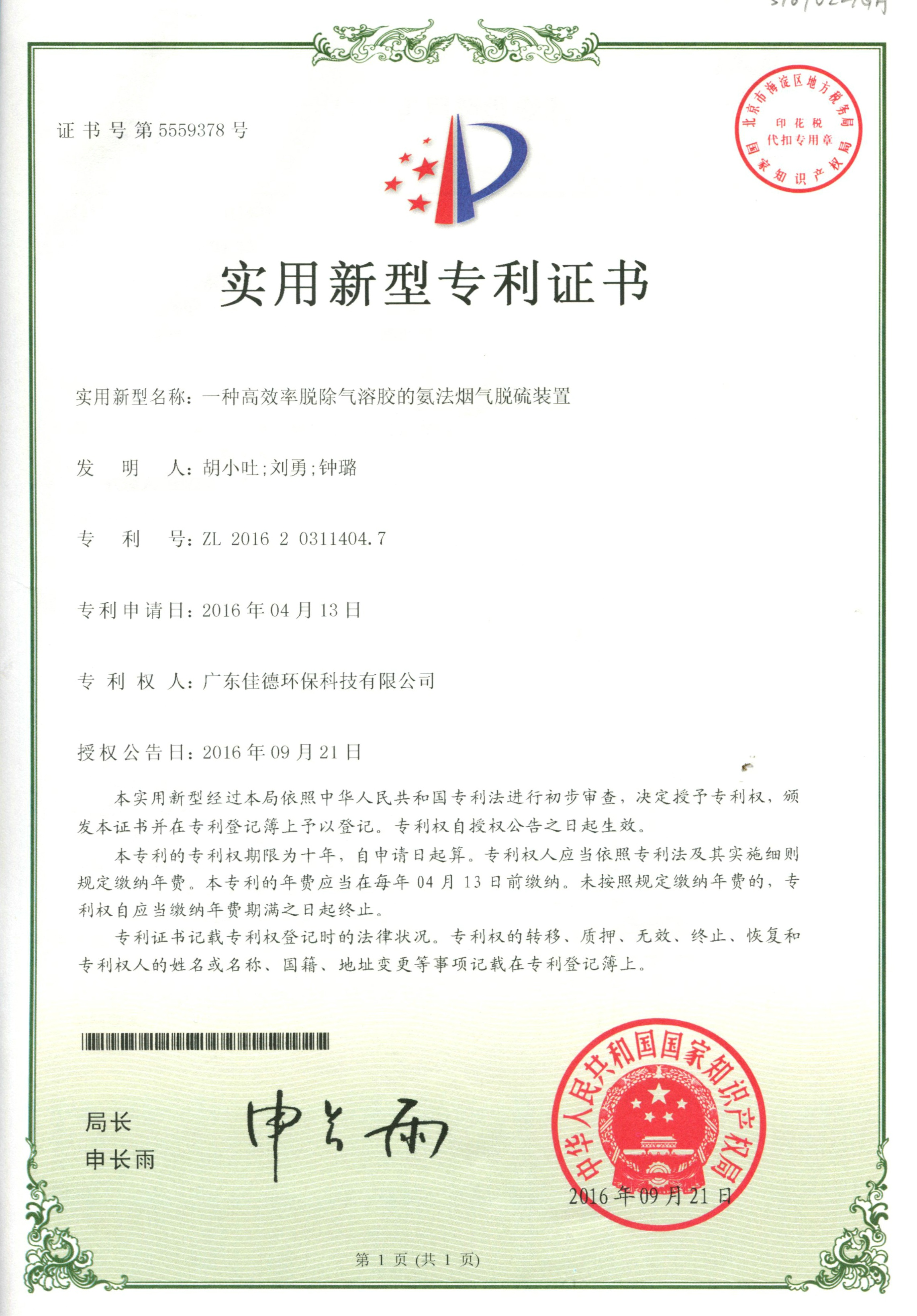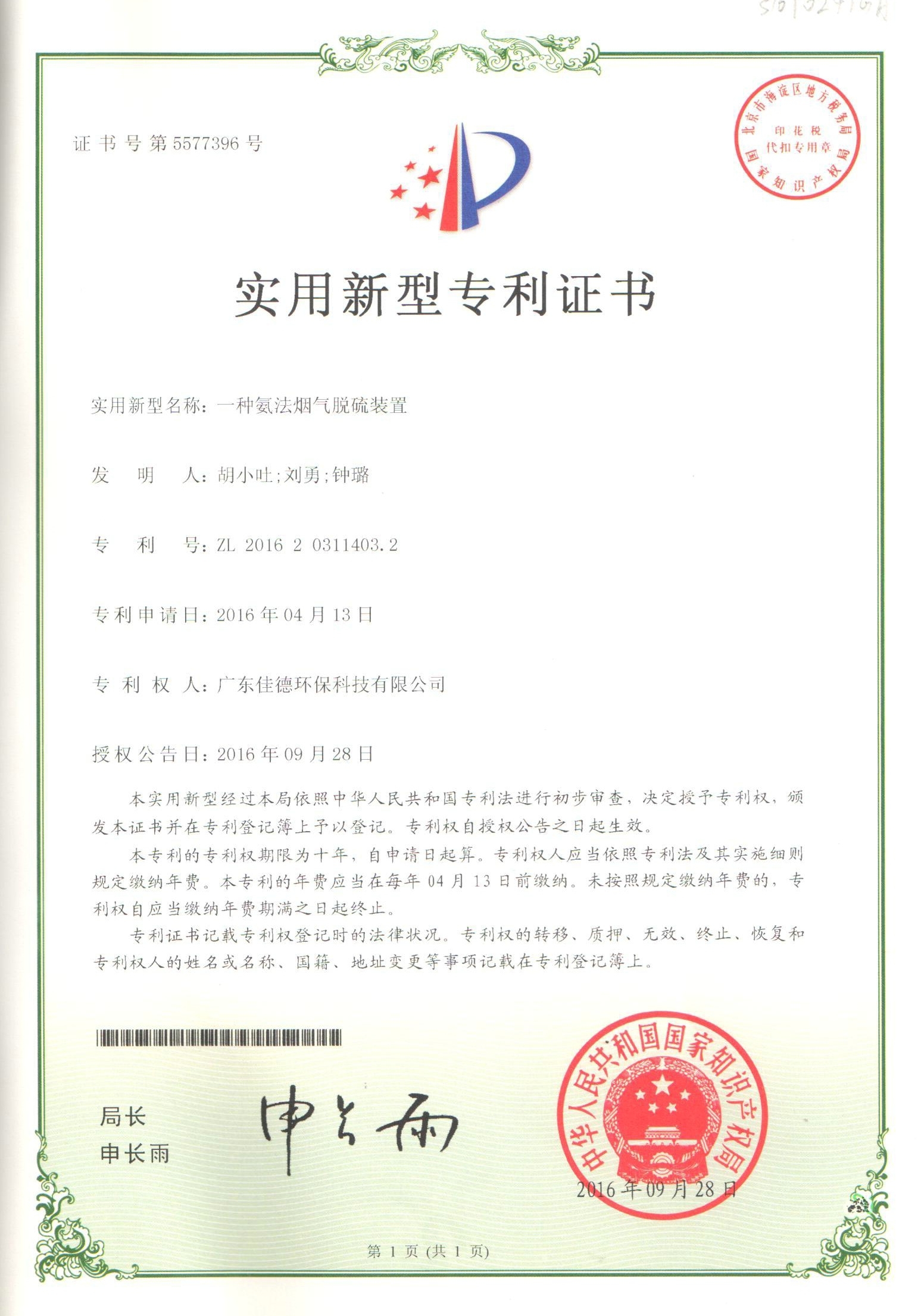 一種氨法煙氣脫硫裝置(ZL201620311403.2)