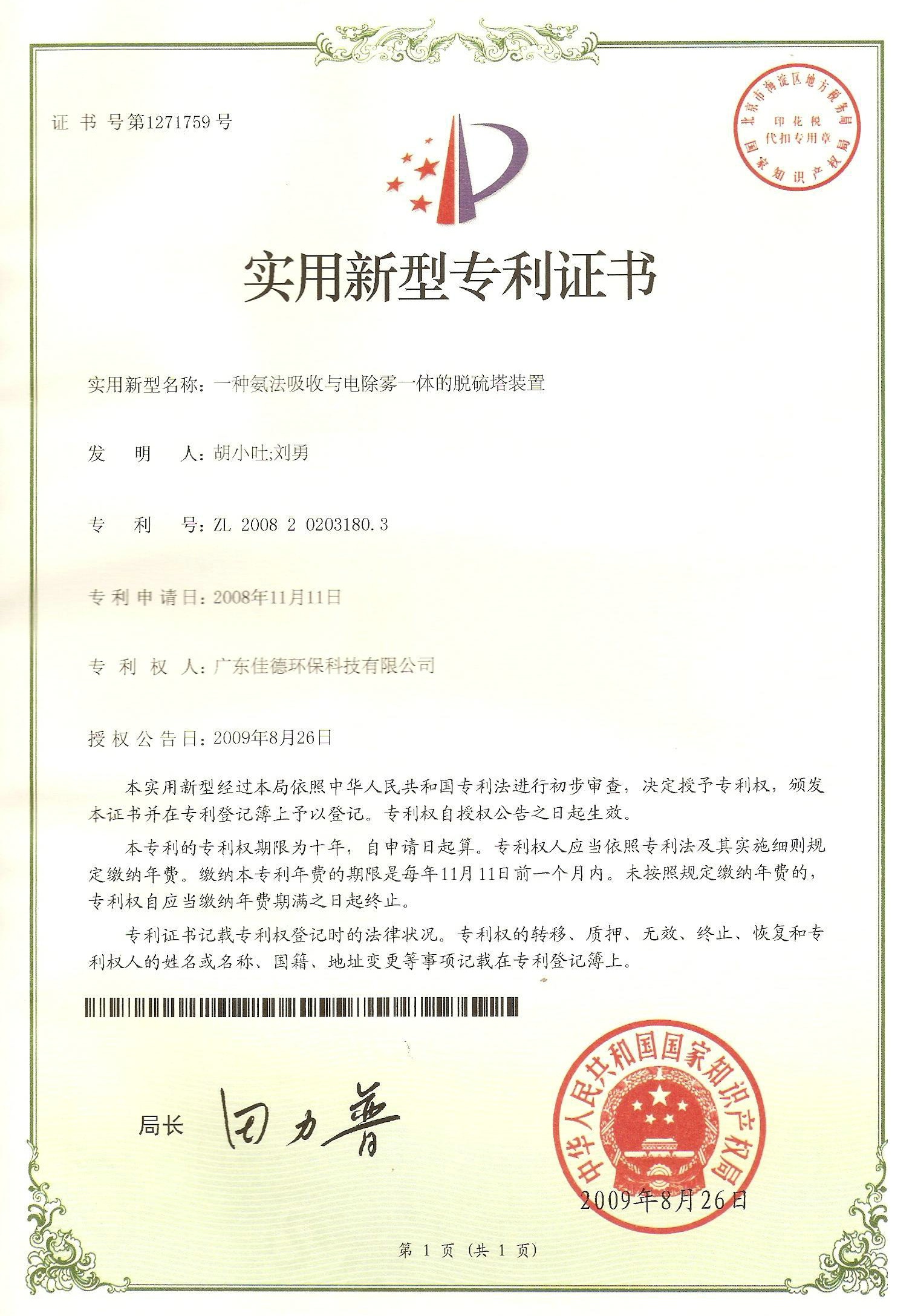 一種氨法吸收與電除霧一體的脫硫塔裝置(ZL20082020318...