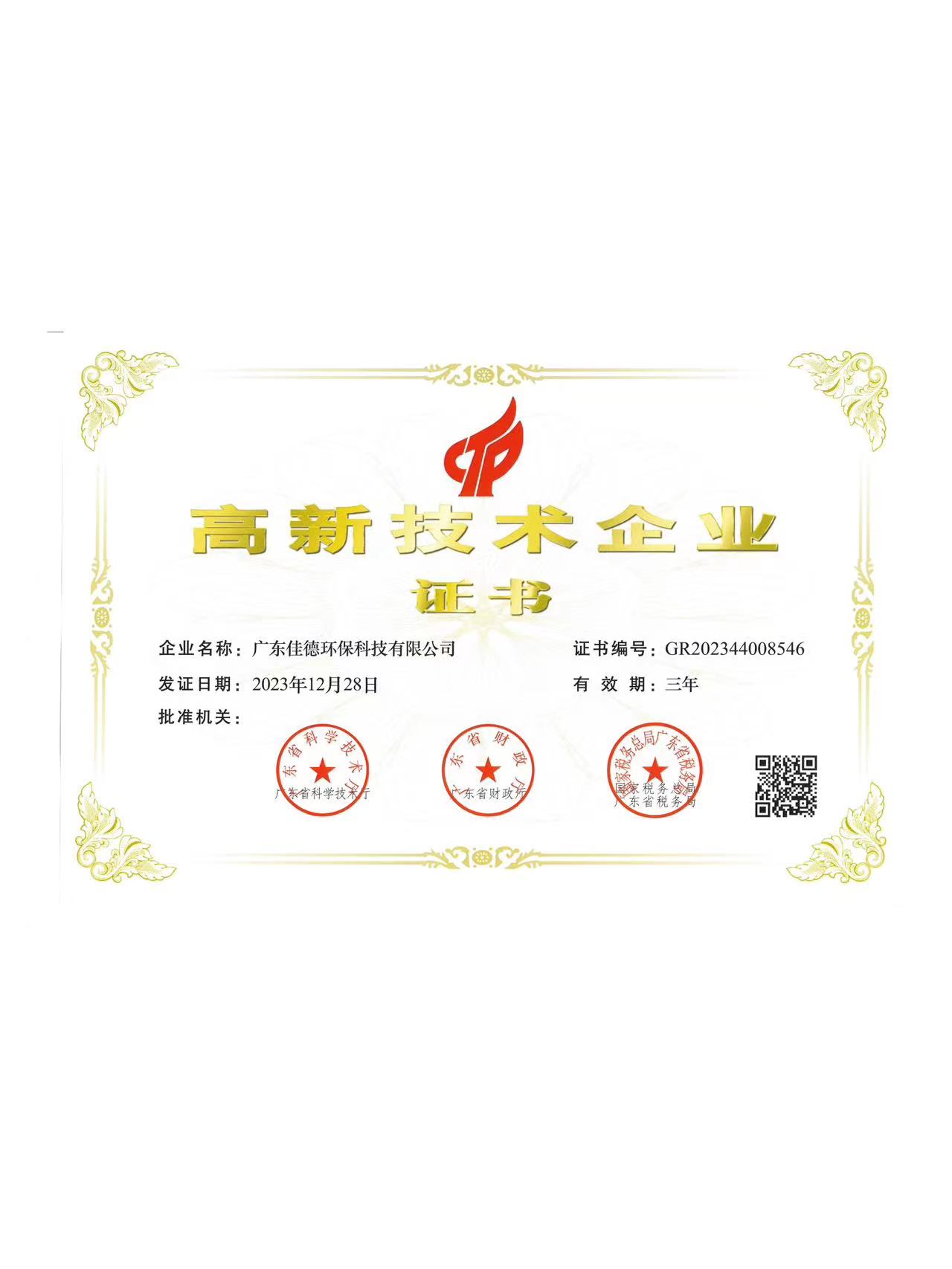 高新技術(shù)企業(yè)證書