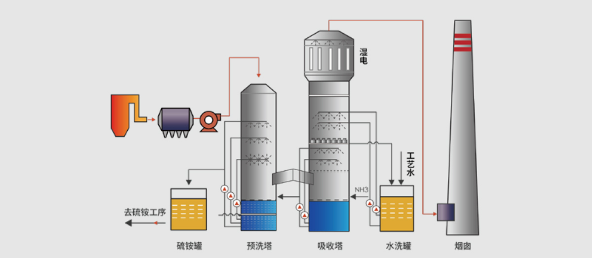 氨法煙氣脫硫吸收劑為氨(NH?),對SO?的吸收反應(yīng)速度快,氨利用率高,脫硫副產(chǎn)物為硫酸銨化肥,不產(chǎn)生廢水廢渣,經(jīng)濟(jì)效益好,流程簡潔,穩(wěn)定運(yùn)行,符合我國“節(jié)能減排”與“循環(huán)經(jīng)濟(jì)”的發(fā)展方向。