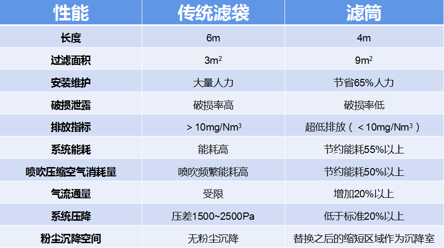 傳統(tǒng)濾袋與濾筒的性能比較